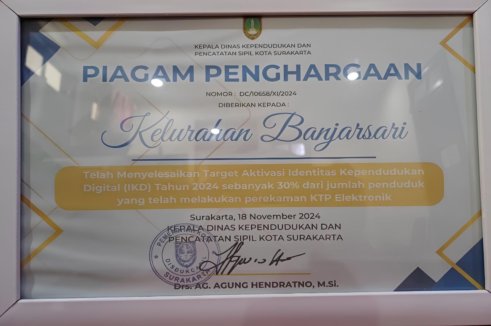 08:57:16 WIBPiagam Penghargaan Telah Menyelesaikan Target Aktivasi Idenditas Kependudukan Digital (IKD) Tahun 2024